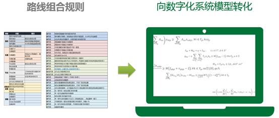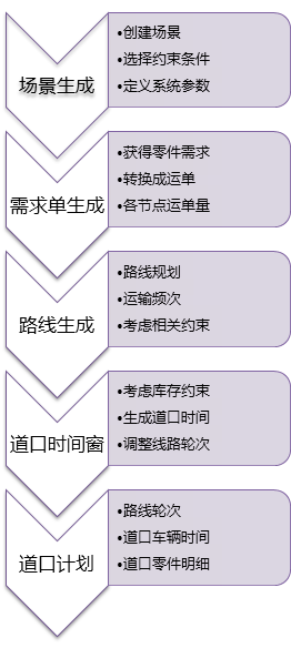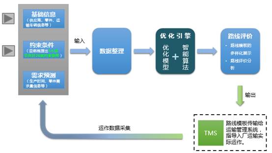 通过业务基础信息以及业务规则的收集整理,以及零件的需求预测,构建优化模型,并将收集到的数据转化为系统所需模式,通过优化引擎,采用智能算法,给出较优的路线模板供业务人员使用。