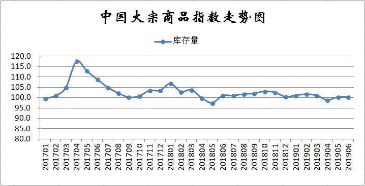 调查、发布的2019年6月份中国大宗商品指数(CBMI)为100.8%,指数连续三个月下跌,商品供应和销售指数双双回落,而库存增速进一步加快,市场淡季特征显现。展望7月份,各地高温酷暑天气持续,需求端压力依然较大,不过随着新一轮中央生态环保督察的启动,供给端压力或有所减轻,加之国家不断宽松的政策导向以及稳投资政策效果逐渐显现,国内经济仍具有一定的期待空间,我们认为国内大宗商品市场下行空间或将有限,价格维持弱势震荡格局。
