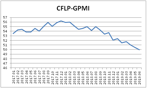 2019年6月份,美洲制造业PMI较上月下降0.2个百分点至51.4%,连续3个月环比下降,美国制造业增速的持续放缓导致美洲制造业增速趋缓。51%以上的指数水平表明美洲制造业整体仍保持较快增长,但增长动力较上半年有所减弱。