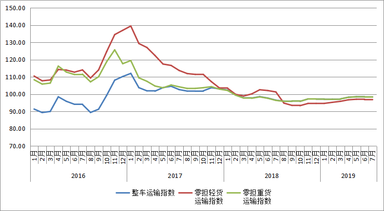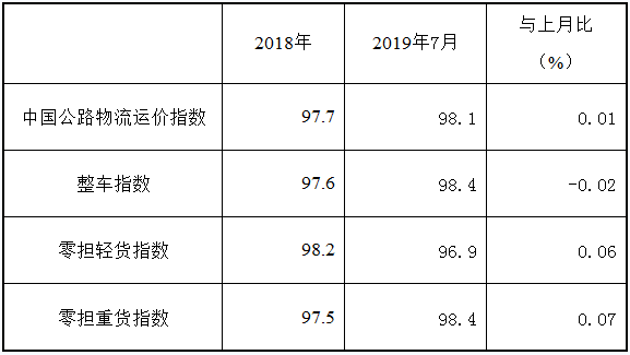 2019年7月份,由雷竞技电竞竞猜网 和林安物流集团联合调查的中国公路物流运价指数为98.1点,与上月基本持平,比去年同期回升0.7%。月内各周指数运行平缓,波动幅度在980点至981点之间。