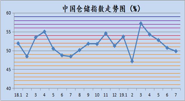 雷竞技电竞竞猜网 与中储发展股份有限公司联合调查的2019年7月中国仓储指数为49.8%,较上月回落0.9个百分点。各分项指数中,收费价格指数、主营业务成本指数、期末库存指数及业务活动预期指数较上月回升,其余指数均有不同程度的回落。