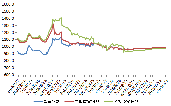分车型看,各车型指数波动较小且略微回落。其中,整车指数为983.55点,比上周回落0.04%;零担重货指数为983.33点,比上周回落0.05%;零担轻货指数为967.71点,比上周回落0.08%。