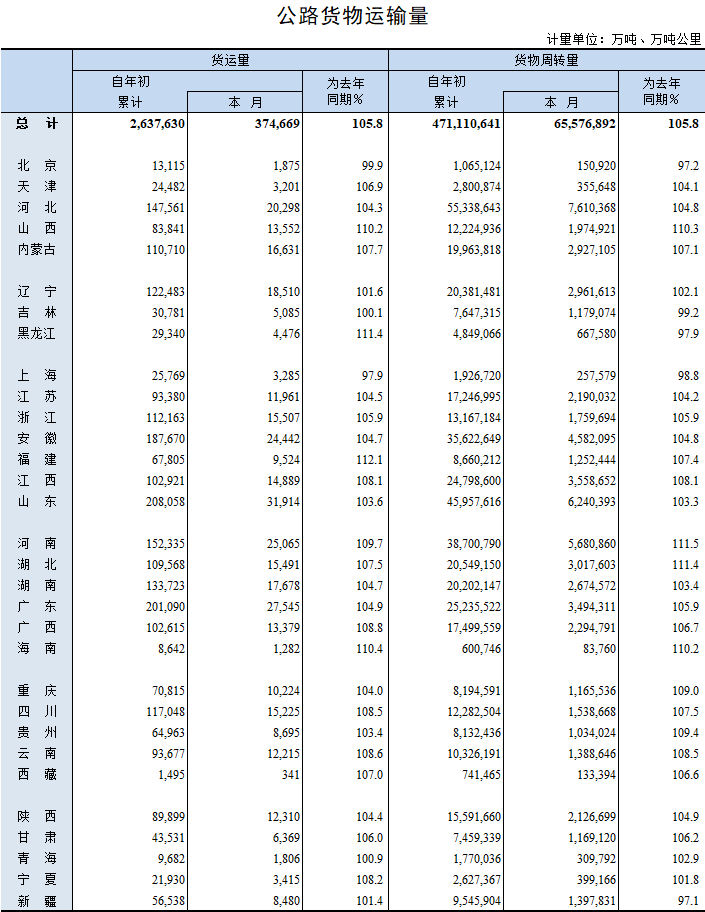 2019年8月公路货物运输量