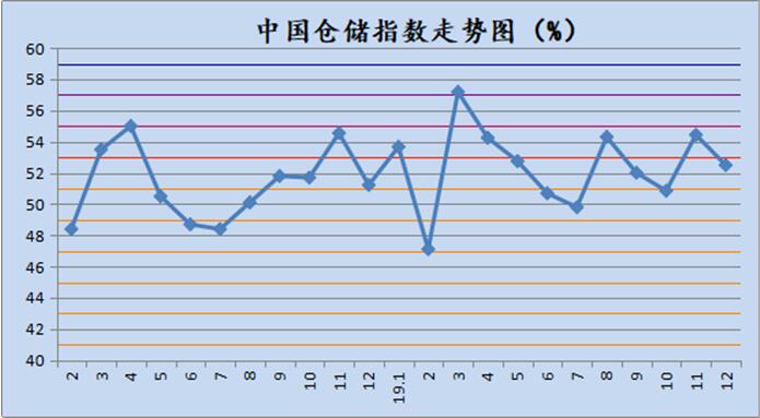 雷竞技电竞竞猜网 与中储发展股份有限公司联合调查的2019年12月中国仓储指数为52.5%,较上月回落1.9个百分点。各分项指数中,收费价格指数、主营业务成本指数较上月有所回升,期末库存指数与上月持平,其余指数均有不同程度的回落。