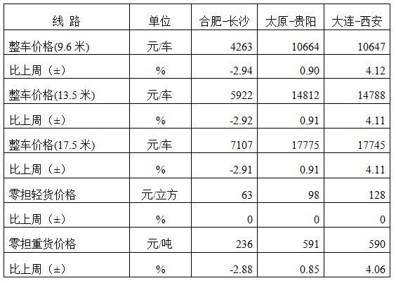 分车型看,各车型指数环比小幅回升。其中,整车指数为1018.23点,比上周回升0.95%;零担轻货指数为990.17点,比上周回升1.03%;零担重货指数为1017.46点,比上周回升1.1%。
