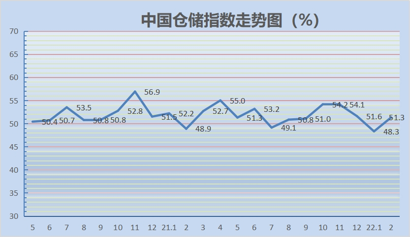 中储发展股份有限公司总裁助理王勇认为:本月在工作日减少、节日因素消退、部分地区疫情等不利因素的影响下,指数不降反升3个百分点至51.3%的景气区间,明显好于历史同期水平,反映出仓储行业运行压力有所缓解,市场需求保持相对较好。特别是大宗商品备货需求增加,生产环节基本正常进行生产,新资源陆续进入市场,库存水平显著回升。后期来看,企业预期较为乐观,业务活动预期指数达到四年新高,预示随着节后生产经营活动的逐步恢复,仓储行业运行将会保持向好发展格局。