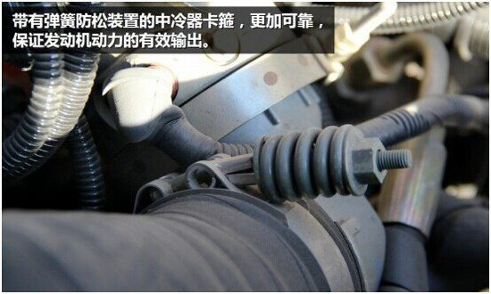 同时,我们注意到福康发动机的中冷器卡箍带有弹簧放松装置,可见欧马可在细节上做足了工作,堪称用心,正是这些细节决定了发动机甚至是整车的可靠性能。