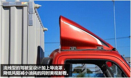 驾驶室整体呈流线型,导流槽、导流罩等一系列符合空气动力学装置的应用,使得欧马可在高速行车的工况下有更佳的燃油经济性,同时使得车身的整体造型美观耐看。