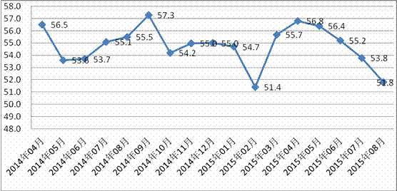 2015年8月份,受高温、台风多雨等季节性因素影响,福建省物流业景气指数延续了回落态势,但仍保持在50%以上,显示物流活动继续保持稳定增长态势。