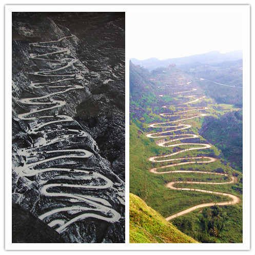 晴隆“24道拐”抗战公路,堪称险峻公路建设史上的杰出典范。它是中美两国人民英勇抗击日本侵略者历史的真实写照,是中国抗日战争大后方唯一的陆路运输线及国际援华物资的大动脉,被誉为“中国抗战的生命线”,又称“历史的弯道”。从山脚至山顶的直线距离约350米,垂直高度约260米;在倾角约60度的斜坡上以“S”型顺山势而建,蜿蜒盘旋至关口,全程约4公里。