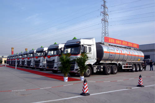 10月31日,东风柳汽·京博物流战略合作暨交车仪式在山东黄河三角洲滨南物流园举行。东风柳汽副总经理宣颖、京博物流总经理高英江等领导出席交车仪式。仪式上,双方签订战略合作协议,50台乘龙H7 6×4标载危化品运输牵引车成功交付京博物流,据悉,这也是乘龙H7在还未全面上市时已获得的首批大单。