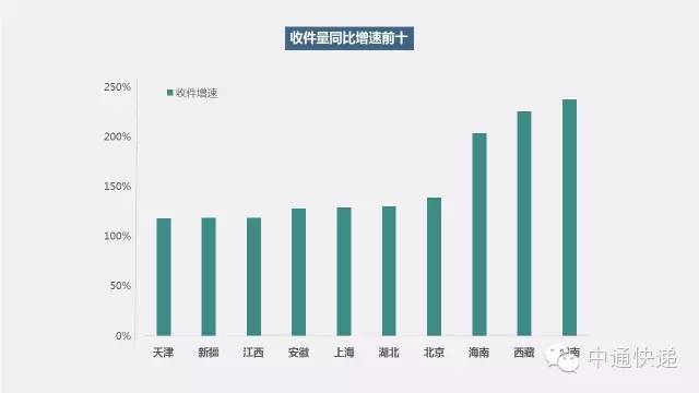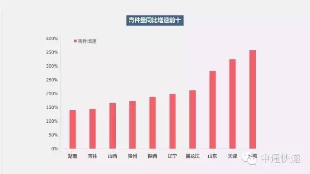 东、江苏是剁手党主力,湖南、西藏网民剁手速度加快根据中通快递提供的数据,位列今年双11快递目的地前三的省市,依旧是广东、江苏、浙江等电商消费习惯和发达程度较高的地区。而随着快递服务渗透率不断提高,电商购物习惯日渐成熟,诸如湖南、西藏等中部省市网民也爆发出了惊人的网购消费增速,2015年双十一,寄往上述省市的快递包裹数量同比增速高达238%和226%。