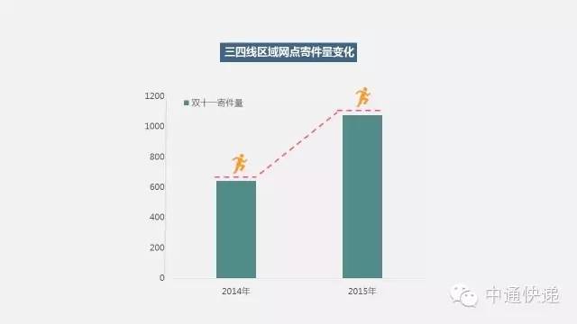 递助跑,农民“触电”创业热情高2015年双十一,农村占比较高的三四线区域寄件量突飞猛进,双11当天比去年双十一全天增长68%。这主要得益于三四线快递渗透率不断提高,为当地农户触网创业解决了物流配送难题;而且,中通快递也于2013年推出了“中通优选”平台,目标瞄准农产品销售,帮助当地农民通过中通覆盖全国60%区域的强大物流网络,实现农产品的“电商化”创业。越来越多的三四线区域农民发现了电商这片创业新天地,借助中通快递日益完善的物流配送网络和创业平台,寻找新的生意机会和创业出路,已成为越来越多农户的共识。