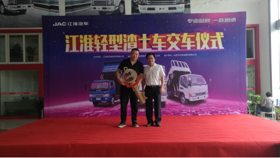 近日,江淮轻型商用车斩获了43辆轻型渣土车大单。7月15日,首批17辆轻型渣土车正式交付合肥韦杰保洁服务有限公司,并在合肥举行了盛大的交车仪式。江淮轻型商用车营销公司副总经理宋华、工程车营销公司总经理辛玉宝,合肥韦杰保洁服务有限公司总经理王正香等领导共同见证了该仪式的成功举办。