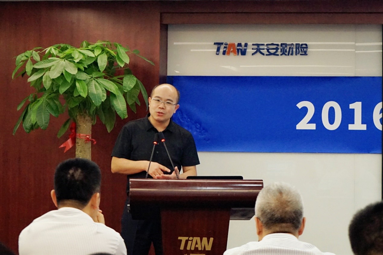 7月30日,中交兴路副总裁李艺作为天安财险特邀嘉宾介绍中交兴路及车旺保犇行动方案