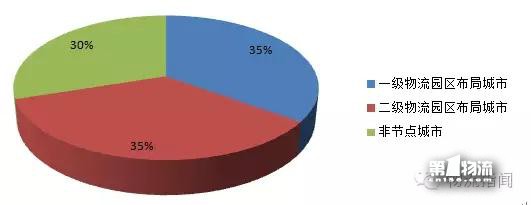 调查显示,国家布局节点城市的物流园区数量占全国物流园区总数的65%,如下图所示: