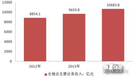 2012-2014年我国仓储业主营业务收入:亿元