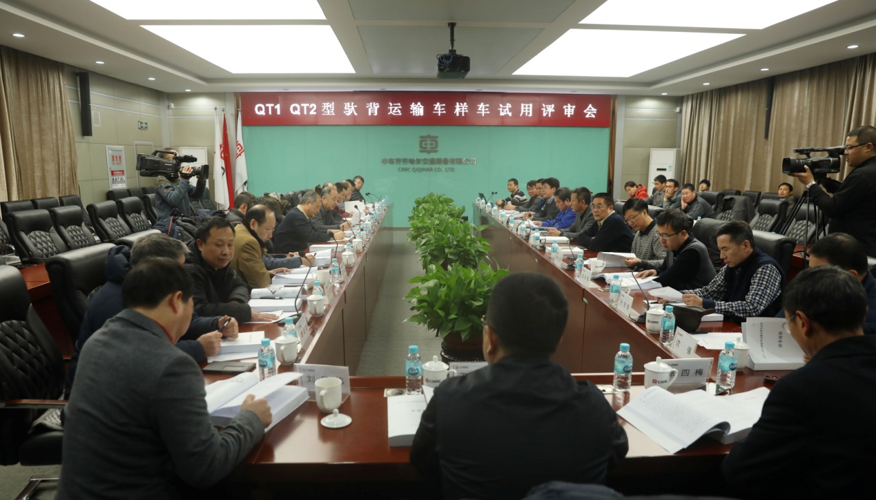 2016年11月10日至11日,由中国铁路总公司在齐齐哈尔组织召开了专家评审会,对中车齐齐哈尔车辆有限公司与北京驮丰高新科技股份有限公司联合研制的我国第一代多式联运公铁驮背运输专用车(QT1、QT2型)样车进行了试用评审。来自中国铁路总公司、科研院所、高等院校及行业相关单位的20多名专家参加了评审会。