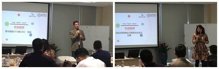 (顺丰国际李锐先生和深圳市跨境电商协会王馨女士致辞)