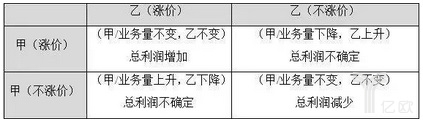 如上图所示,四象限图中快递企业按照涨价和不涨价可以出现四种不同的结果: