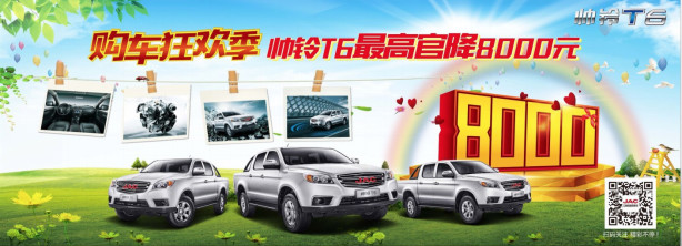 为响应政策需求,江淮皮卡特推出创客版帅铃T6皮卡车型,通过提高车辆性能及优惠产品价格为创业者创造更大的使用价值,助力创客一族完成创业梦想。在车辆性能展示上,帅铃T6时尚的外形、优质的动力输出、突出的承载优势、出色的节油水平都高质量满足了用户的使用需求。值得一提的是,帅铃T6年初对全系车型进行了最高达8000元的官降,创客版车型性价优势一跃而起,降低售价门坎,意味着将会有更多消费者享受到帅铃T6给予的创业福利。