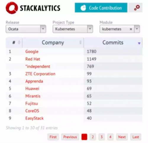 从代码贡献排行榜中可以发现,以 OpenStack 平台为业界所熟悉的 EasyStack(北京易捷思达科技发展有限公司)开始集中发力容器领域,而且选择了 Kubernetes 容器编排技术。