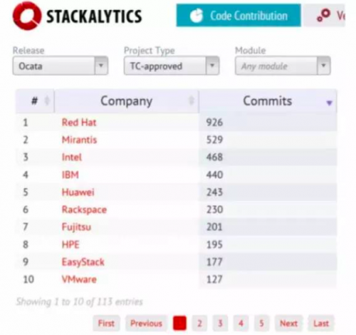 同时贡献 OpenStack 和 Kubernetes 全球三大专业开源企业:红帽、Mirantis、EasyStack;