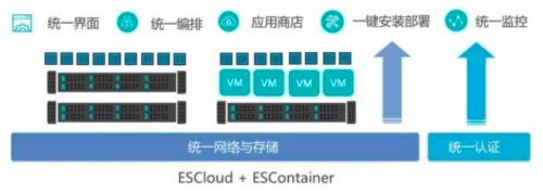据悉,EasyStack ESContainer 面向应用角度设计,自身提供应用管理服务,方便用户在平台中集中管理发布容器化应用;对于有状态应用场景进行优化,方便用户构建多层微服务化应用;支持无 Overlay 纯二层网络等多种网络方案,容器应用与虚拟化应用网络直通;增强监控与日志,面对庞大的容器集群,ESContainer 还提供了增强的多级的监控、日志管理。