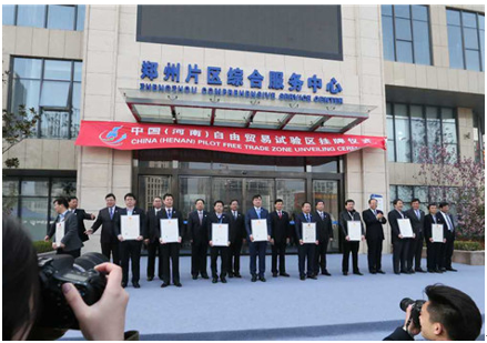 4月1日上午,中国(河南)自由贸易试验区(简称“河南自贸区”)挂牌仪式在郑州片区综合服务中心举行。河南省委书记、省人大常委会主任谢伏瞻出席仪式,并为河南自贸区揭牌,河南省委副书记、省长陈润儿致辞。主席台领导向郑州鲜易等首批入区企业代表颁发营业执照。郑州鲜易正式入驻河南自贸区,将进一步推动鲜易供应链国际化战略落地。