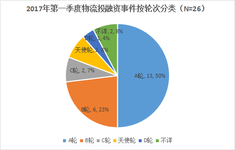 经过轮次梳理我们发现:80%以上的投融资事件集中在天使轮和A轮阶段,由此可见,在大众创新、万众创业的大环境背景下,物流与供应链领域作为一个亿万级的巨大产业确实吸引了很多创业者的创新尝试;同时C轮及以后投融资事件仅占9%,也从侧面表明资本市场对互联网改造传统物流领域的谨慎。
