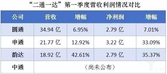 圆通一季度的低迷还体现在营收和净利润的增幅上,均只有7%左右,远远低于申通和韵达的增幅。