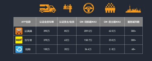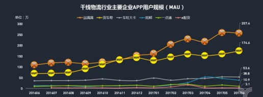 在干线车货匹配APP应用方面,截至2017年6月,运满满APP用户规模(MAU)达257万,排在行业首位,货车帮以175万的用户量排在第二位;除运满满及货车帮外,陆鲸用户规模近3个月增长较快,目前在40万左右,车旺大卡稳定在50万左右,从网络公开数据来看,运满满已经是行业领跑者。