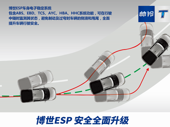 值得一提还有帅铃T6国V版在行车安全上的高端塑造,采用四轮碟刹的制动系统,使得制动效能更加突出。加上博世9.0型号ESC(车身电子稳定系统),包含ABS、EBD、TCS、AYC、HBA、HHC系统功能,可在行驶中随时监测其状态,避免制动及过弯时车辆的侧滑和甩尾,全面提升了车辆的行驶安全,可以从容应对各种复杂路况。综合外型、舒适性、动力系统、安全性能等全方面的评测,帅铃T6国V版以满分级的实力争雄皮卡高端战场是勿容置疑的,或将成为皮卡界的又一面标杆。