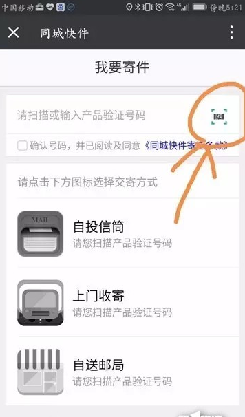 接着点选扫描图标或者手动输入产品验证号码。据记者电话咨询北京邮政客服,其介绍这个产品验证码就是邮政专用包装袋或者包装纸箱背后条码。