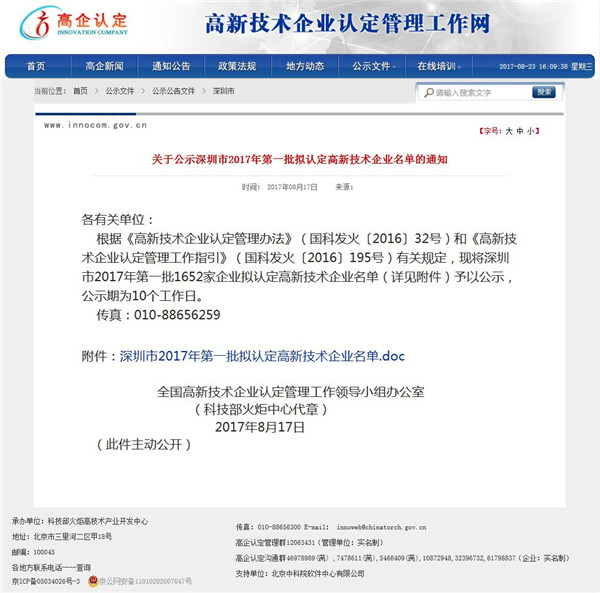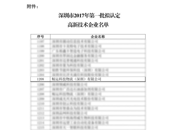 8月17日,科技部火炬中心公布了深圳市2017年第一批高新技术企业名单。鲸运科技物流(深圳)有限公司成功通过国家高新技术企业认定,荣获“国家高新技术企业”称号。