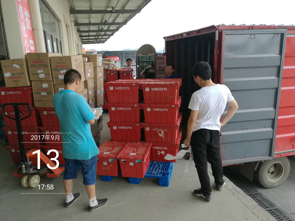 图为传化公路港长沙分拨中心内已整装上车的屈臣氏货品