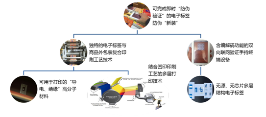 本次获奖的黑科技产品就是融合印刷电子和RFID,并突破多项技术瓶颈,将传统的印刷工艺应用于制造电子元器件和产品,其最大特点是它们不依赖于基底材料的导体或半导体性质,可以以薄膜形态沉积到任何材料上。在绝大多数的智能包装应用中,都可以通过整合印刷电子技术,在包装生产制造环节嵌入并实现“智能“属性,例如为最终的产品提供可追溯、真防伪、防窜货,在仓储、运输、销售过程中的质量信息记录与表现,并具备柔性、环保、低成本等优势。