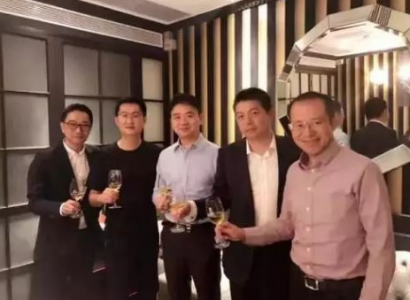 (图从左到右:唯品会联合创始人洪晓波、腾讯公司控股董事会主席兼CEO马化腾、京东集团董事局主席兼CEO刘强东、唯品会联合创始人兼CEO沈亚、腾讯总裁刘炽平)
