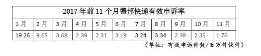 纵观今年前11个月的情况,六家上市公司的有效申诉率,整体呈下降趋势。这表明快递企业服务质量正在不断提升。