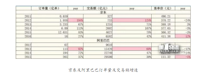从电商平台数据来看,近几年交易额增速回落,并且由于消费升级原因,客单价自2016年开始出现上升迹象,导致电商平台订单量增速约为20-30%左右。考虑到网购消费者保护政策的完善,逆向物流逐步发展成熟,退货率也将保障一部分的快递需求。