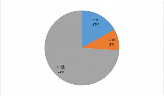 传播调性上,中性传播占74%,正面传播占17%,负面传播占9%。本期最受关注的负面舆情主要来自于企业业绩下滑。