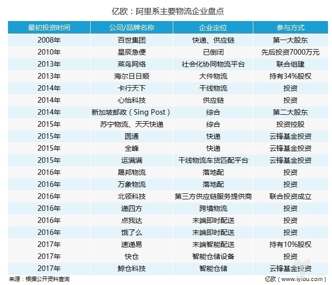 此前亿欧曾在一个求“协同”,一个唱“共生”,刘强东跟马云“撞衫”了?一文中盘点了阿里系主要物流企业:
