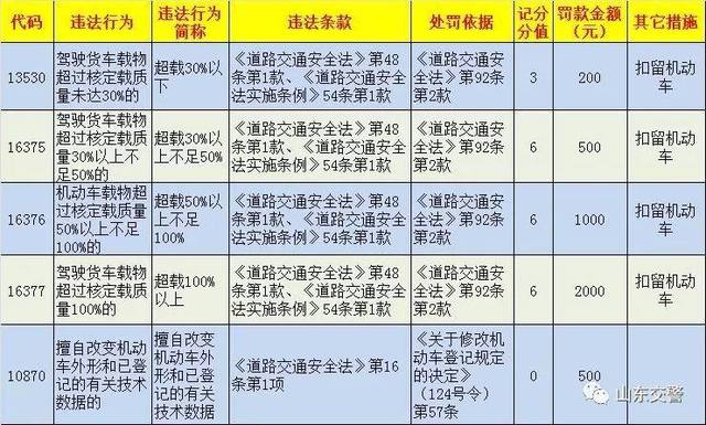 ②山东、甘肃、云南:最高扣6分,罚款2000元。这三省处罚手段依然是扣车,卸载,罚款,扣分。但罚款和扣分成为主要手段,关于罚款:云南超载50%以上,罚款金额达2000元;甘肃、山东超载达到100%以上罚款2000元。