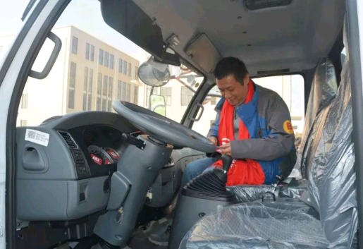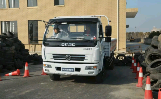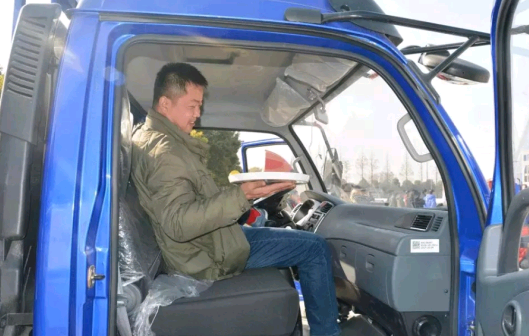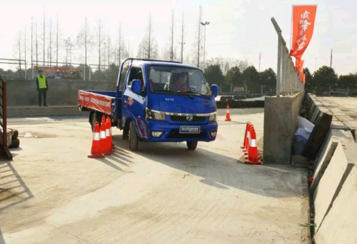 小心翼翼的通过,控制手部抖动很关键。东风轻卡的宽体驾驶室,前面的腿部间距很宽,助他一气呵成