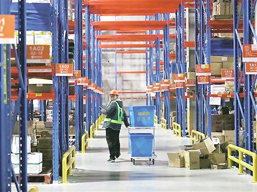一名工作人员在中国(杭州)跨境电子商务综合试验区下沙园区保税仓库拣选商品。