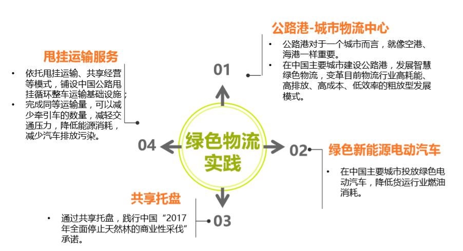 在中国主要城市投放绿色电动汽车,降低货运行业燃油消耗;2018-2022年每年增加20000台,每年减少碳排放28.4万吨;