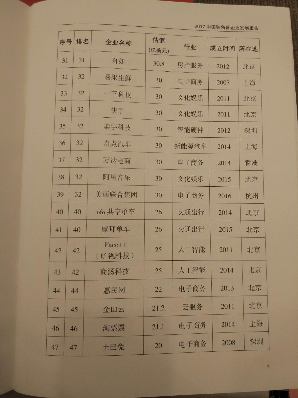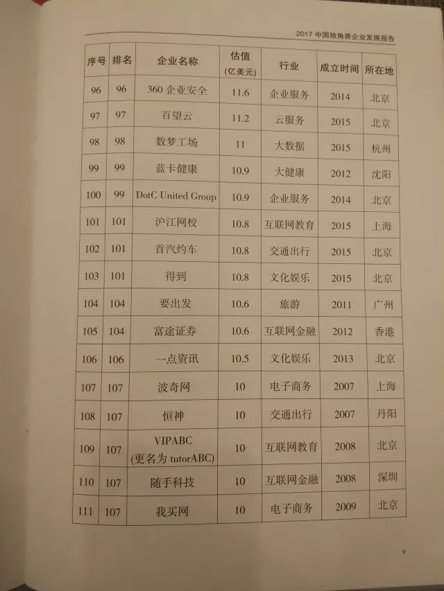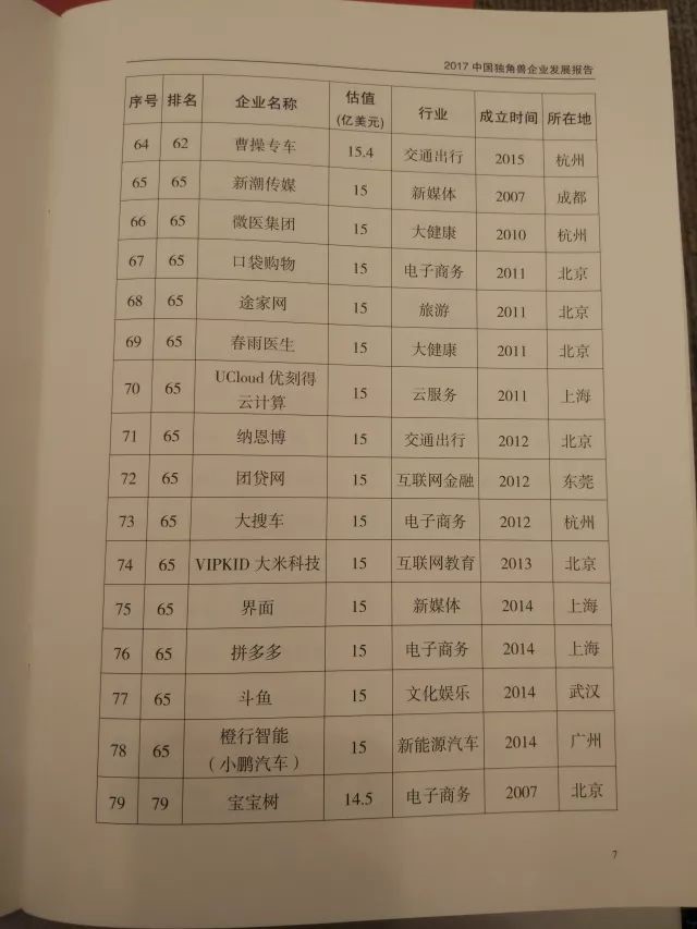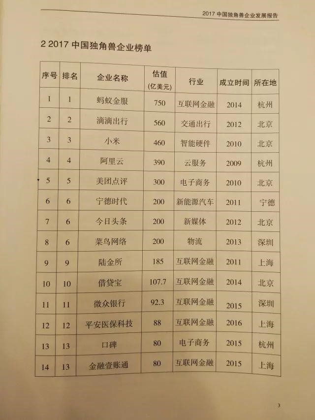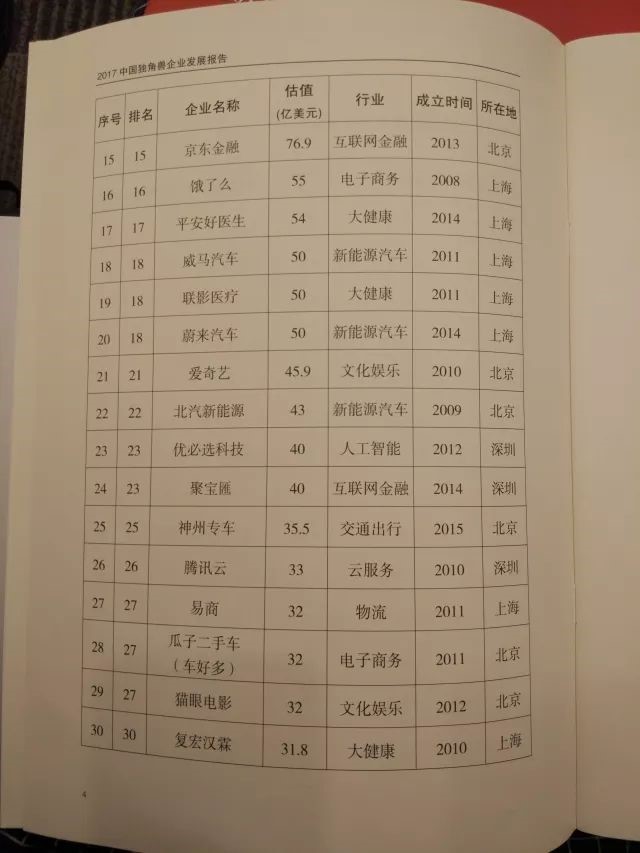 5、符合条件1、2、3.且估值超过(含)100亿美元的称为超级独角兽。估值以2017年12月31日前最新一轮融资为依据。