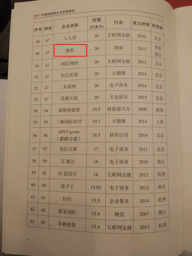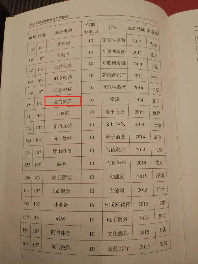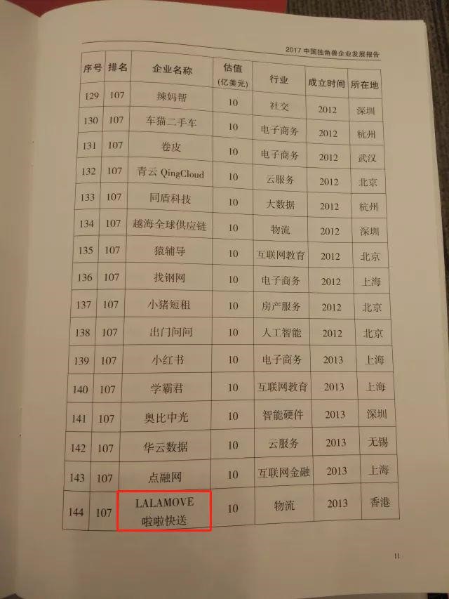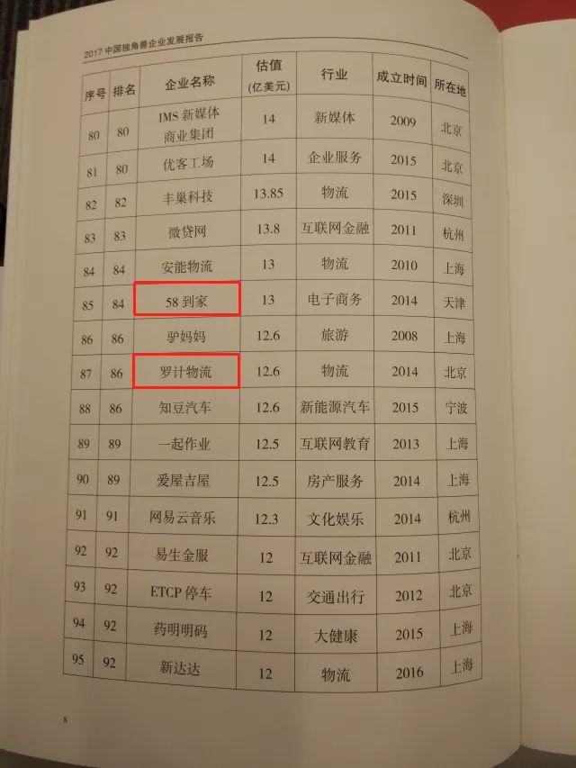 2017中国独角兽企业共164家,总估值达6284亿美元,其中涉物流行业的企业共11家,中物联物流信息服务平台分会会员5家上榜。