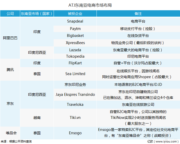 Tokopedia:成立于2009年,印度尼西亚最大的电商平台。2016年8月17,Tokopedia宣布,已锁定由阿里巴巴领投的11亿美元新一轮的融资。