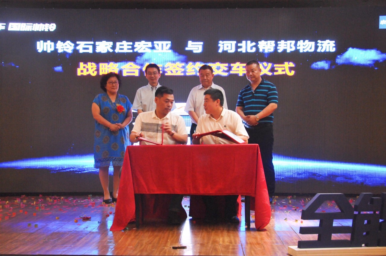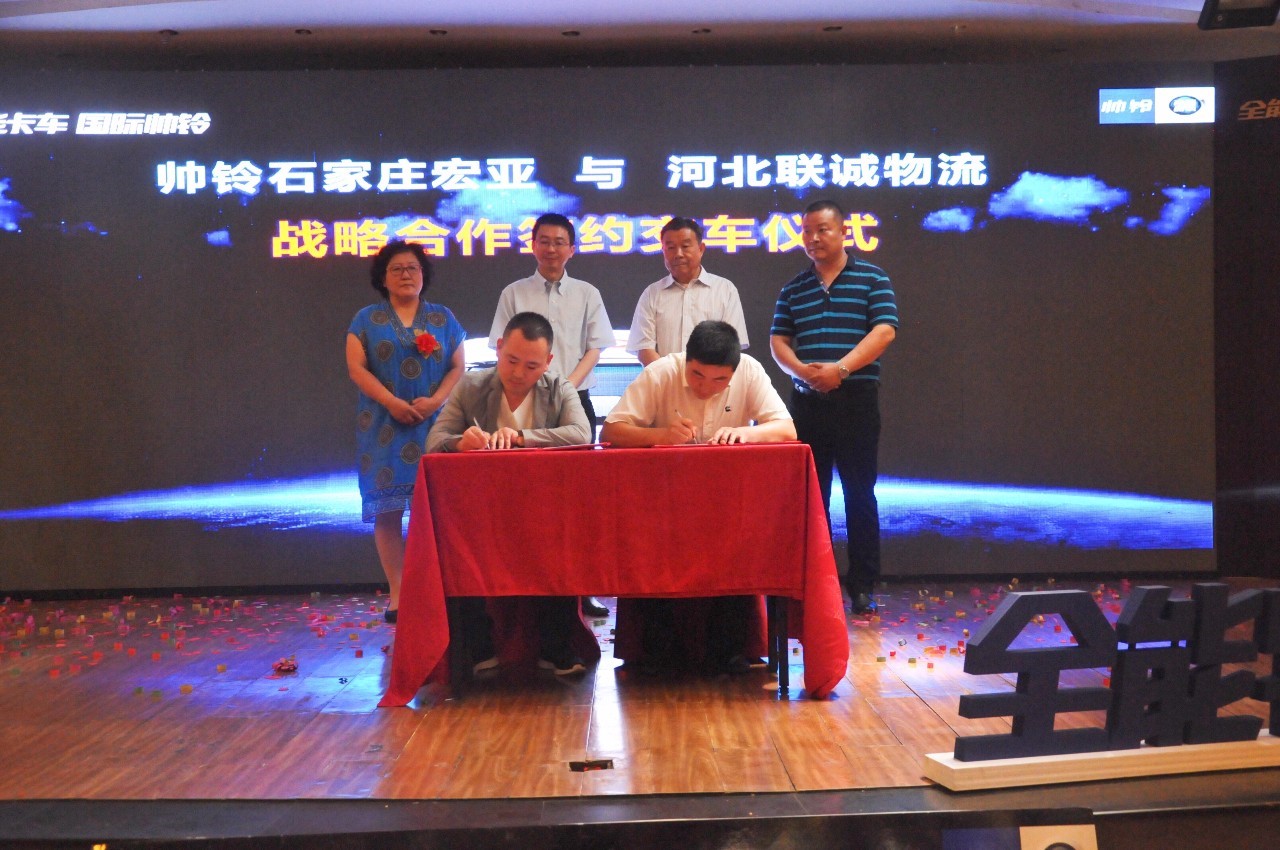 在活动现场,帅铃石家庄宏亚经销商分别与河北联诚物流以及河北帮邦物流签订战略合作仪式。